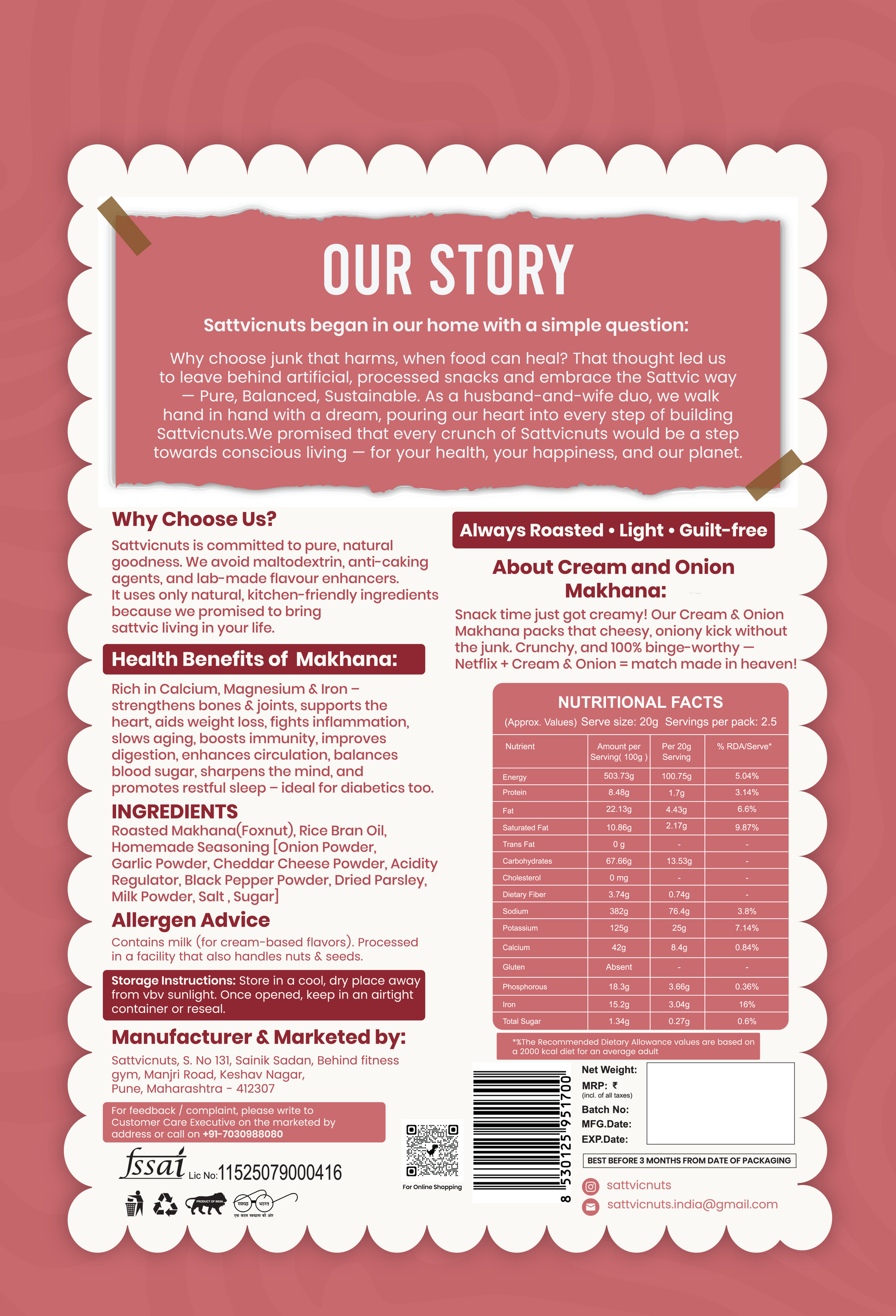 Snack time just got creamy! Our Cream & Onion Makhana packs that cheesy, oniony kick without the junk. Crunchy, and 100% binge-worthy — Netflix + Cream & Onion = match made in heaven!